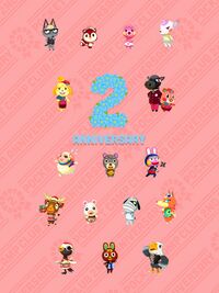 Version 2 Featuring Isabelle, Roscoe, Apple, Flurry, Reese, Tom Nook, Timmy, Tommy, Katie, Mabel, Apollo, Audie, Dom, Raymond, Jack, Erik, Gladys, Poppy, Diana, Zipper, Snake, Label, O'Hare, Marina, Olive, Lucky, Willow, Shino, Celeste, Chrissy, Bud, Fauna, Fang, Sprinkle, Sylvana, Whitney, Bunnie, Hamlet, Walker, and Cousteau.