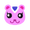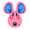 Puddles is a frog with different shades of pink coloring her body—a dominant dark pink covering most of her body and a lighter pink around her mouth and eyes. She has deep-blue eyes and a V-shaped mouth.